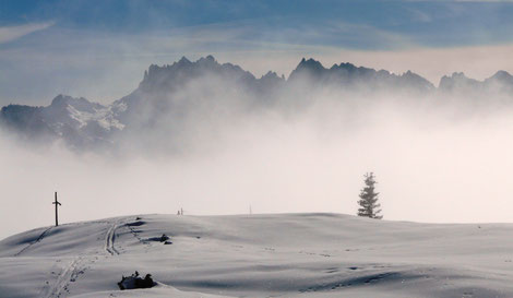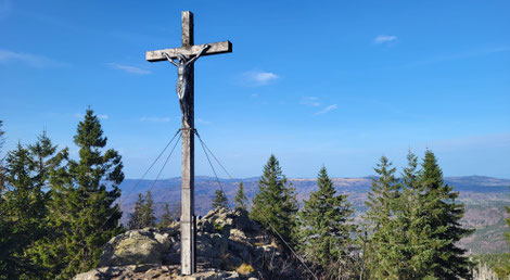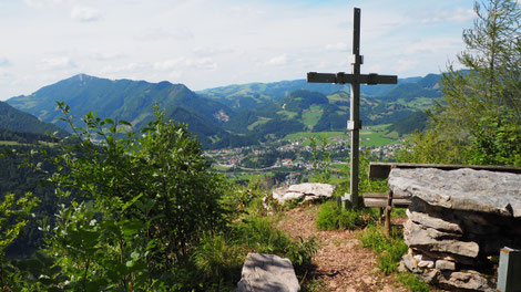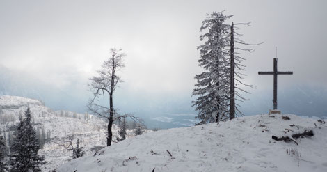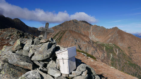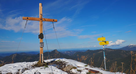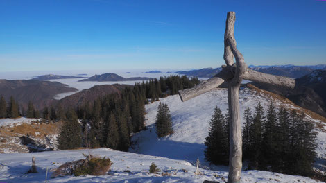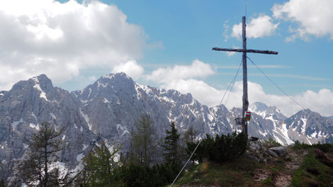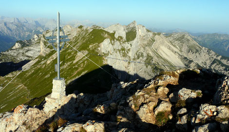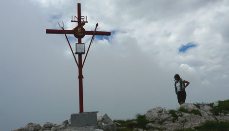 das Gipfelkreuz steht am Südgipfel auf 2261m
