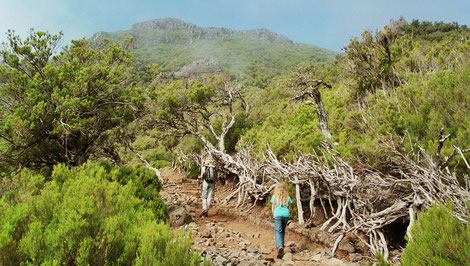 höchster Gipfel von Madeira, Foto: am Weg zur Berghütte und Gipfel, wo wir aufgrund des Nebels nichts mehr sehen