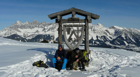 Blick vom unscheinbaren Gipfel zum Dachstein