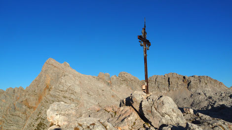 die Stangenwand besteht aus mehreren Gipfelhöhen, im Bild blicken wir zum kreuzgekrönten Gipfel