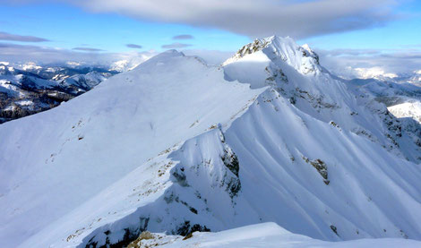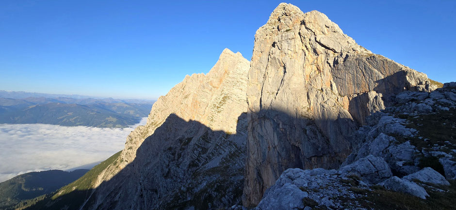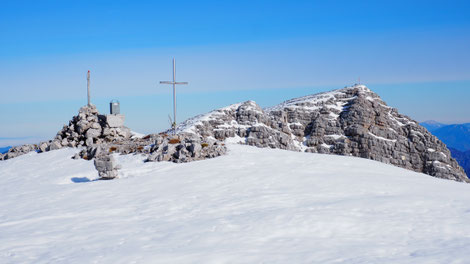 der etwa 10m höhere Hauptgipfel liegt Richtung Kreuzmauer
